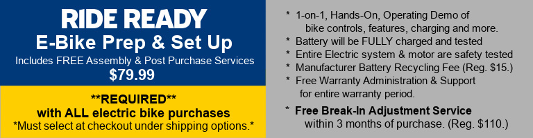 - Class 1 e-bike with a pedal-assisted speed up to 20 mph.